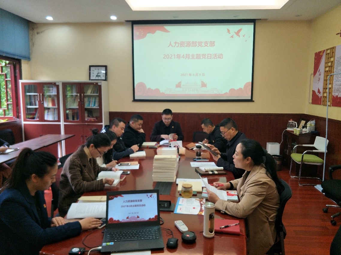 2021年4月9日下午,人力资源部党支部在单位202会议室开展4月主题党日活动,活动由支部副书记、人力资源部副部长李燕同志主持。