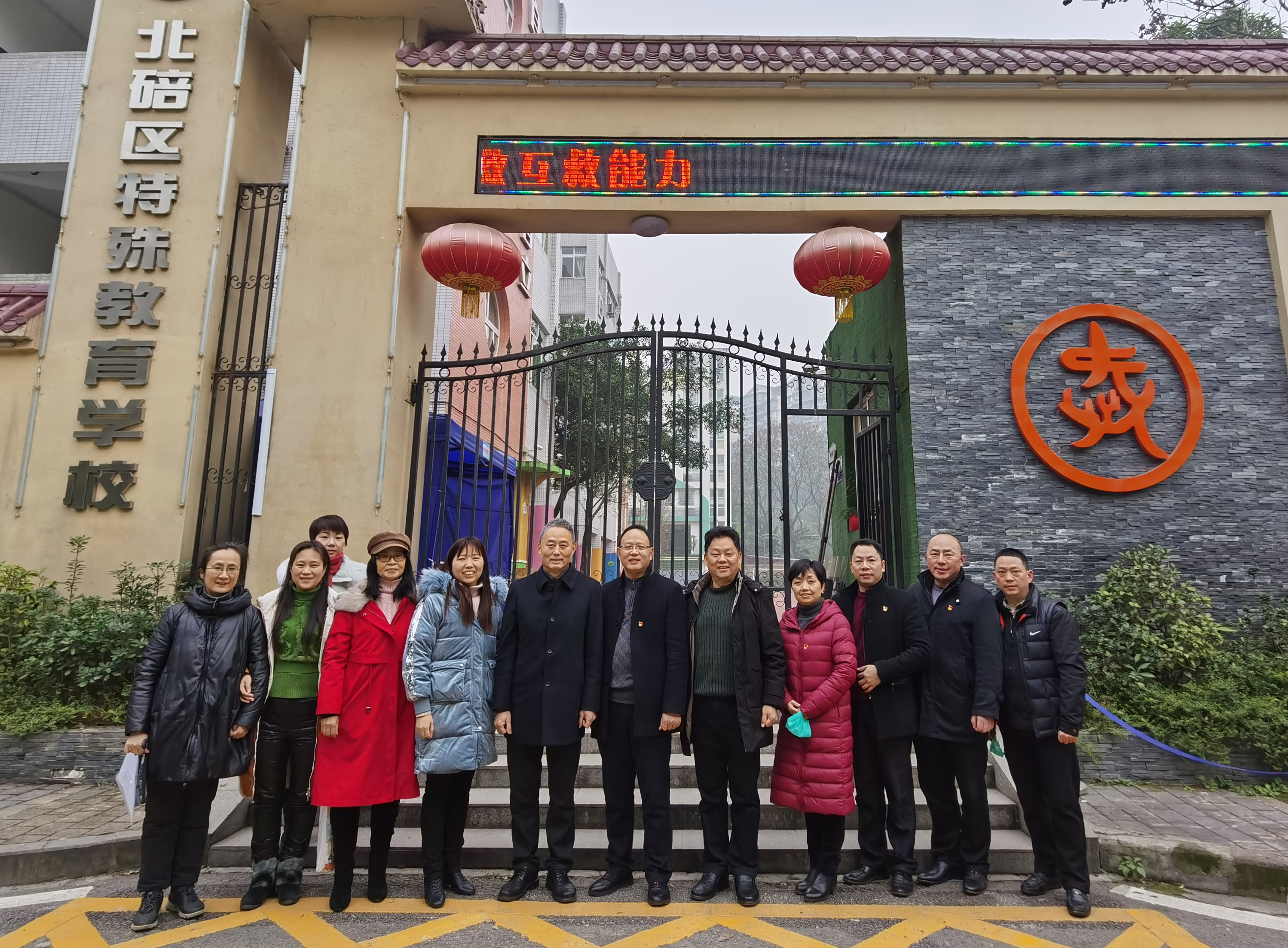 12月25日上午,李华副书记与校工会党支部全体党员一起带着为特殊学校准备的元旦游园活动爱心物品来到北碚区特殊教育学校,特殊教育学校校长王均、德育主任贺仲灵接待了全体成员。首先,校工会党支部向北碚区特殊教育学校赠送了元旦游园活动爱心物品。之后,王均校长为大家介绍了学校的基本情况,重点介绍了目前特殊教育儿童的心理及学习情况,之后带领大家参观了教学区、学生宿舍、食堂、康复训练区、心理支持区及文化展示区等,了解学生的饮食起居、日常学习生活和康复训练情况。学校布局合理,整齐美观,是名副其实的特殊儿童快乐成长的校园、家园、乐园,学校充分体现了“爱心浇灌、静待花开”的办学理念,也体现了特殊儿童“吮吸雨露、绽放自己”自觉、自理、自立精神。