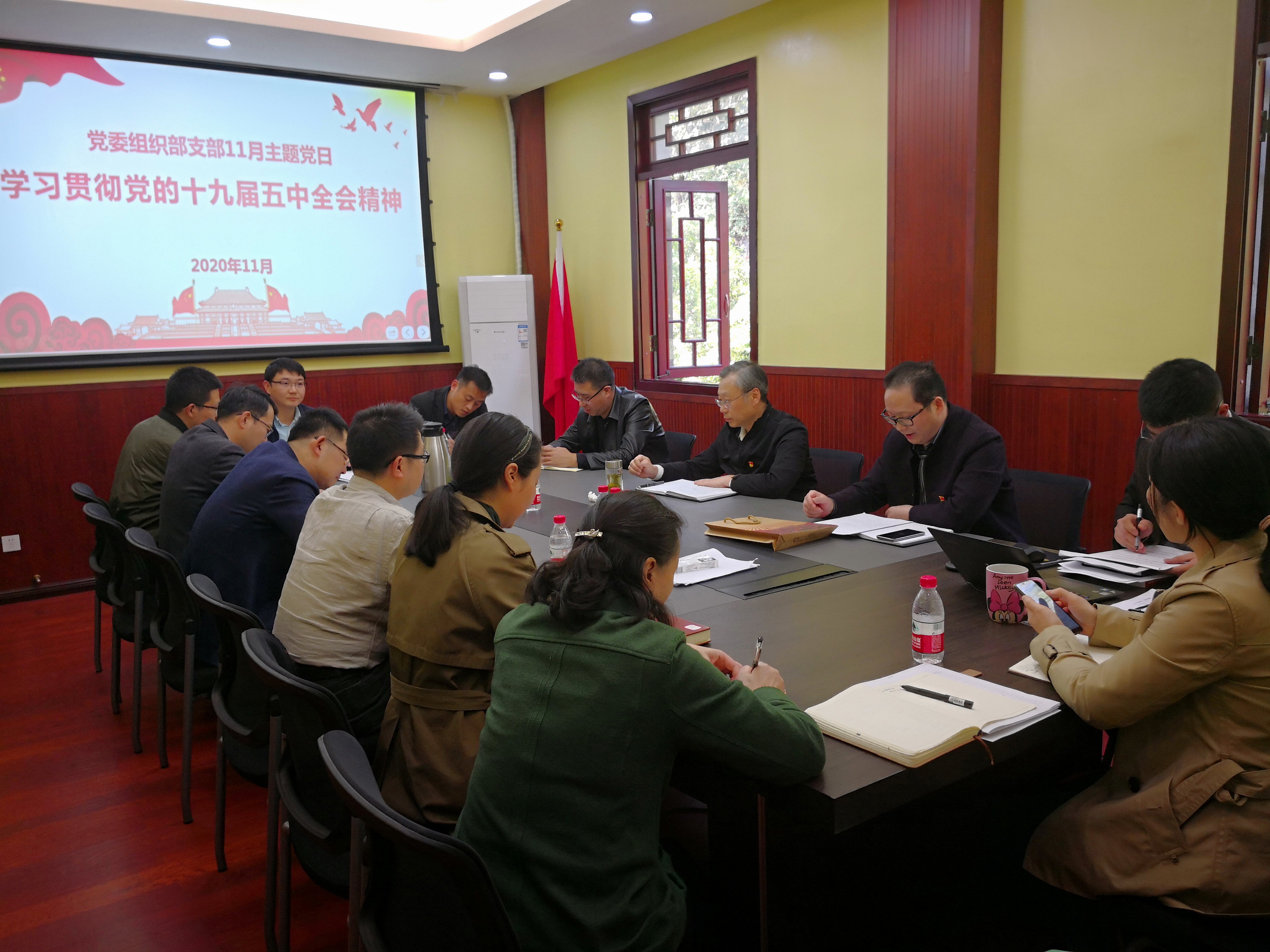 1113日下午,党委组织部党支部召开“学习贯彻党的十九届五中全会精神”主题党日活动。活动由党支部副书记刘肃同志主持。