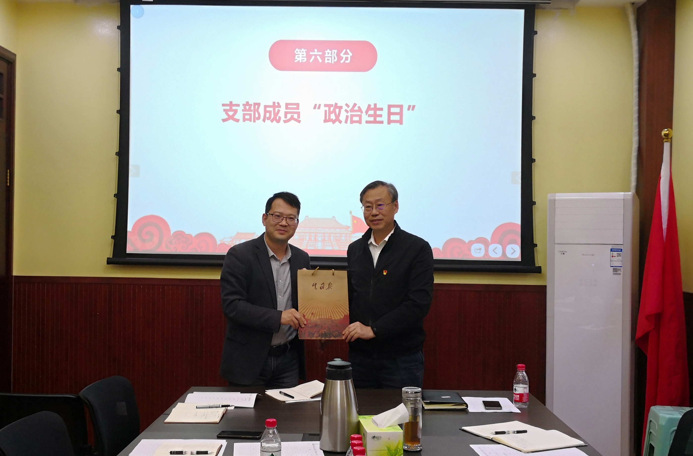 党支部为吴中全同志过政治生日,向其赠送了“生日报”和生日贺卡。吴中全同志重温了自己的入党志愿书,分享了自己的“初心”故事,感谢党组织的信任与栽培,自己将不遗余力地发挥党员作用,为学校的人才事业发展贡献力量。