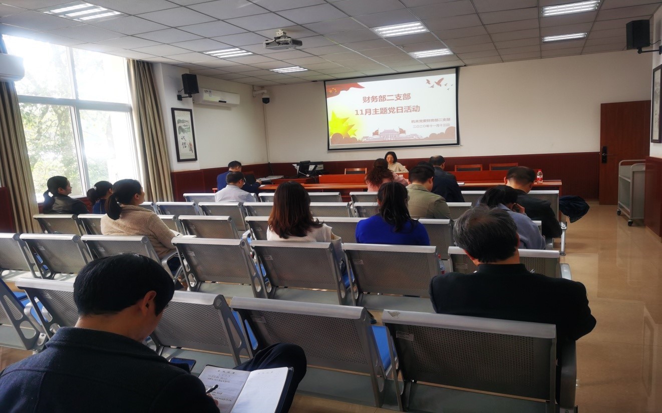 1113日下午,财务部二支部在文俊楼235会议室开展了11月主题党日活动,活动由支部副书记李滟同志主持,活动主题为“学习贯彻党的十九届五中全会精神”。