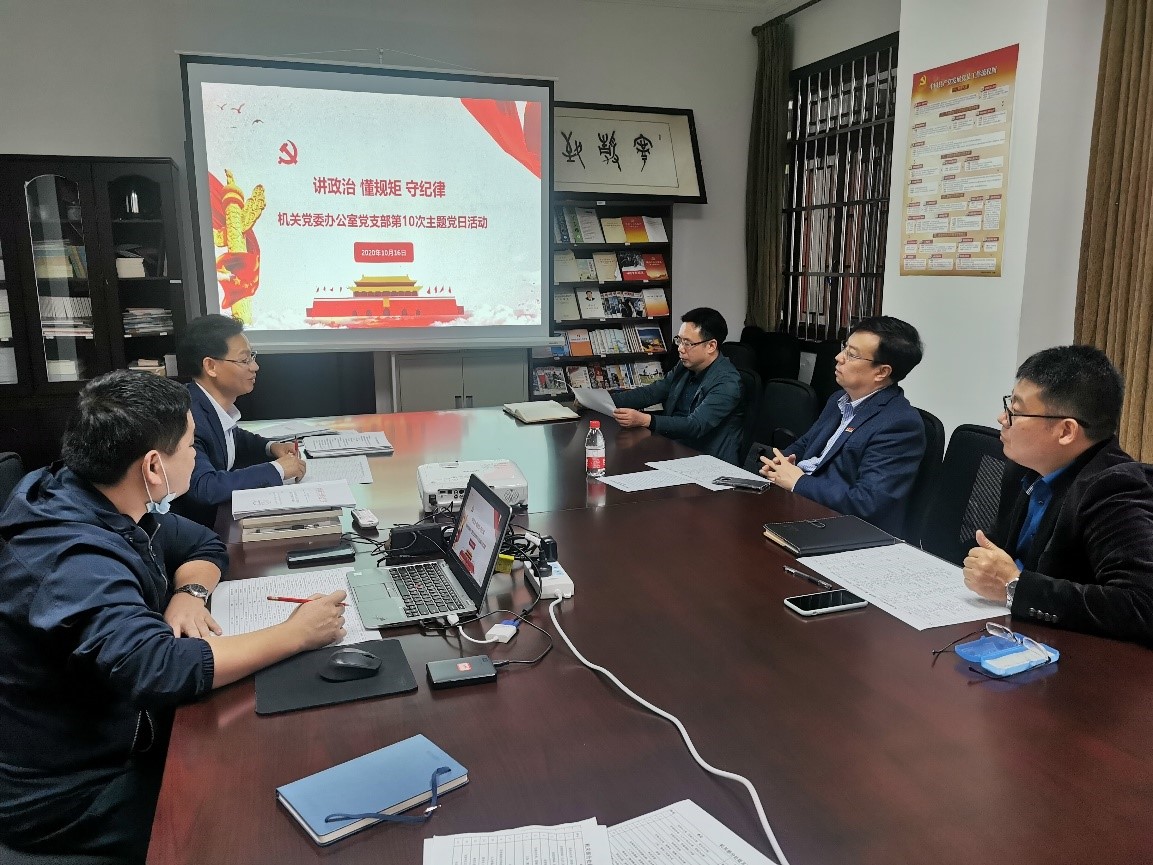 根据学校党委统一部署,10月16日下午,PA视讯官网办公室党支部召开“讲政治 懂规矩 守纪律”主题党日活动。会议由PA视讯官网办公室党支部书记梁大明同志主持,副校长、PA视讯官网书记王进军同志参加了本次活动。