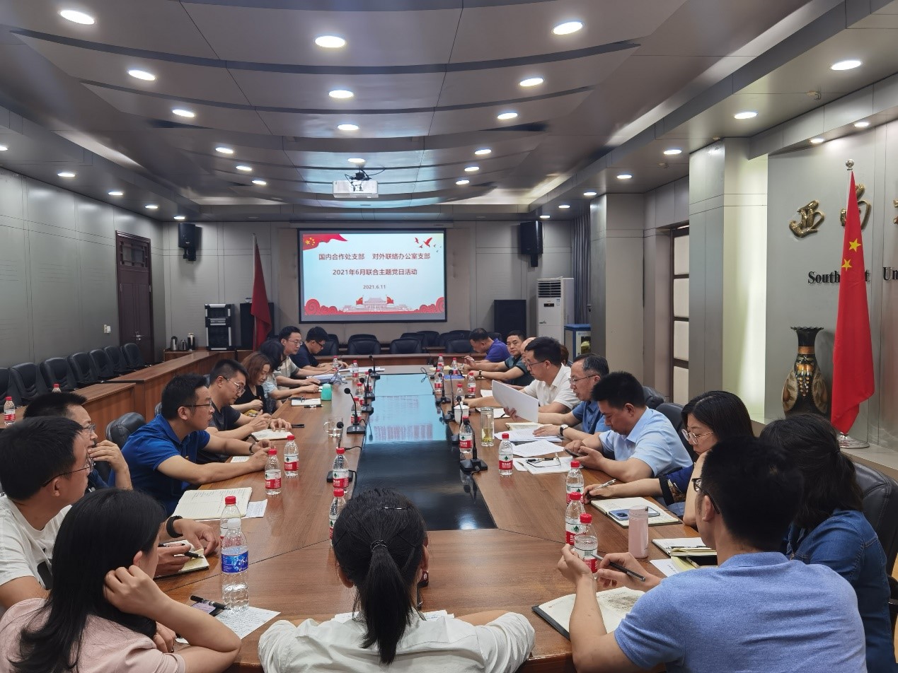 2021年6月11日下午,国内合作处党支部与对外联络办公室党支部联合开展了主题党日活动。会议由国内合作处支部书记程龙主持。