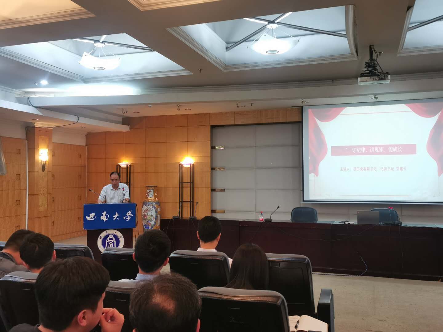 随后,PA视讯官网副书记、纪委书记刘建长围绕“守纪律、讲规矩、促成长”主题,就政治纪律、廉洁自律、机关作风等方面结合生动的案例为大家做了重要要求,并强调了国庆放假的相关纪律要求。他指出,机关青年干部要讲规矩,严以修身锤炼政治品质;要磨意志,清醒头脑坚定政治立场;要守底线,廉洁自律永葆政治本色。