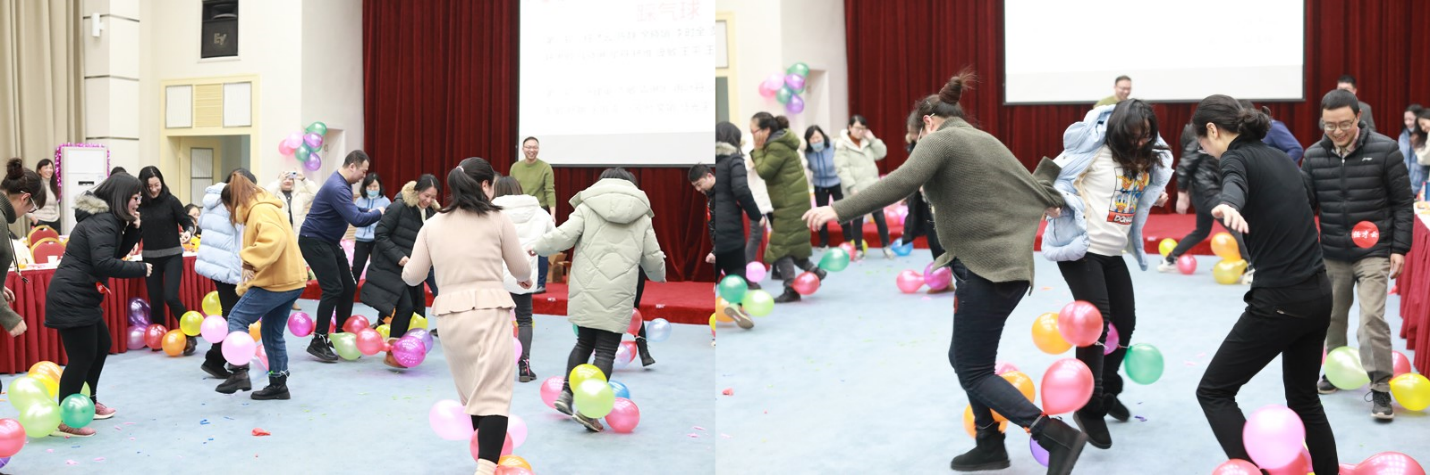 在财务部董乃斌部长振奋人心的年终小结和热情洋溢的新年祝辞之后,开始“击鼓传花”游戏,多才多艺的职工们有的献上新年祝福,有的表演歌舞器乐节目。随后,全体职工分组进行了抢凳子、端乒乓球接力、风火轮接力、双人背气球接力、踩气球等趣味项目的比拼。在一片欢乐祥和的气氛中,全体职工热情高涨、积极参与,充分发挥团队协作精神与个人潜力,相互鼓励与帮助,共同完成趣味活动项目。
