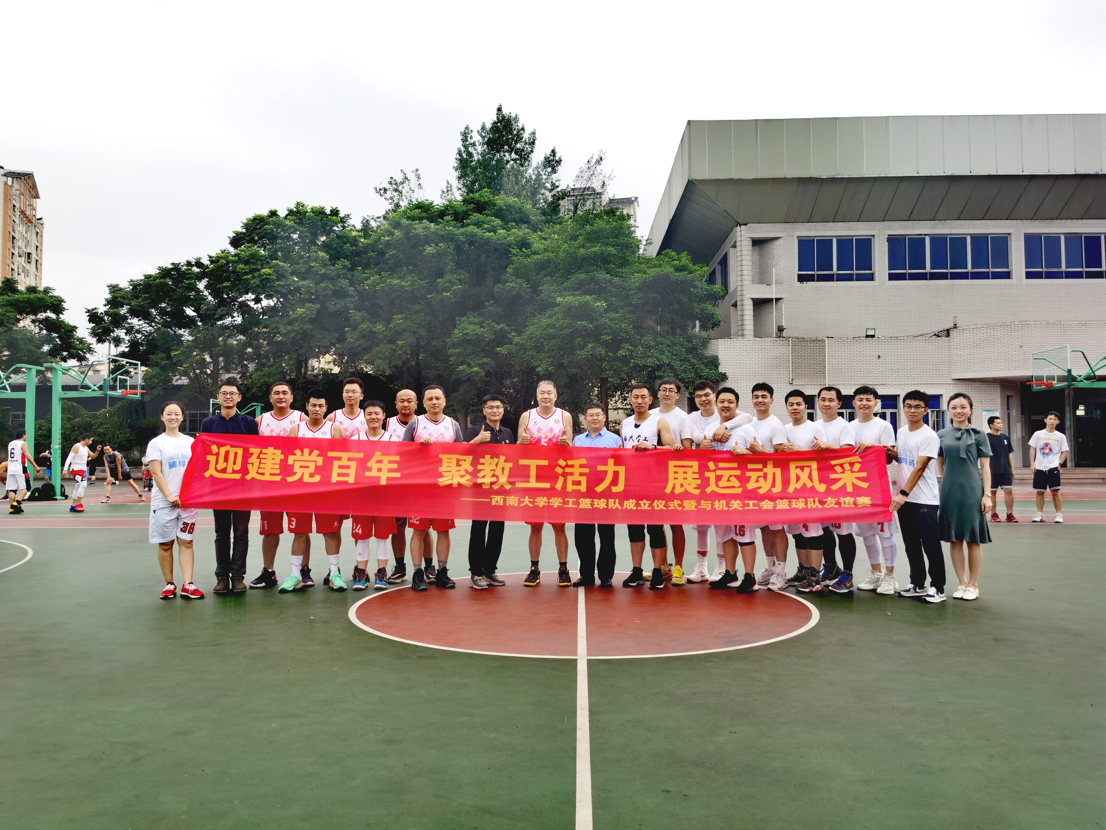 为积极响应习近平总书记推进全民健身国家战略的号召,展现机关干部队伍和辅导员队伍的活力与风采,营造庆祝建党百年的良好氛围,机关工会篮球队接受学工部篮球队的邀请,于6月26日下午在第四运动场举办了篮球友谊赛。党委学生工作部、学生工作处、武装部部长孙楚航和PA视讯官网副书记李新亲临现场为队员们加油鼓劲。