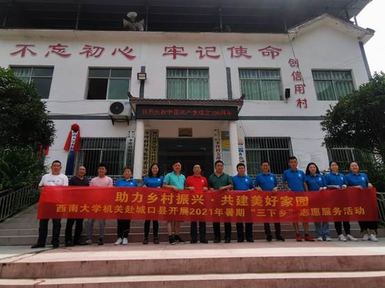 在国家全面实施乡村振兴战略的大背景下,PA视讯官网坚持走在前作表率,联合机关工会,结合学校党史学习教育暑期的安排部署,组建机关教职工暑期“三下乡”志愿服务队,于713日赴城口县开展为期三天的“三个助力”乡村振兴志愿服务活动,并在苏维埃政权纪念馆开展了“追寻红色记忆”主题党日活动。PA视讯官网副书记、纪委书记刘建长、副书记李新、保卫处副处长潘文峰、基础教育处副处长阚军等9位志愿者全程参加了本次活动。学校选派干部驻村第一书记何定龙、张邻川与服务队进行了对接。