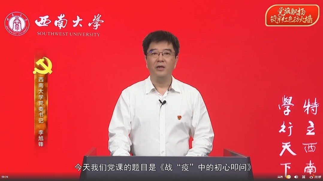 8月14日,学校党委书记李旭锋面向党员师生讲授了一堂题为《战“疫”中的初心叩问》专题微党课。此次微党课是经教育部党组批准,在常态化疫情防控中加强高校基层党建“四个一”行动之一,是高校党组织战“疫”示范微党课第8讲,在光明网、新华网、教育部“微言教育”政务新媒体等众多平台同步播出。