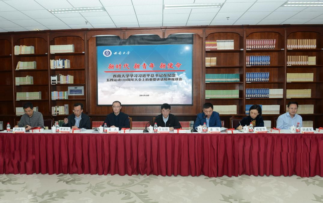 校党委副书记潘洵表示,学习贯彻习近平总书记在纪念五四运动100周年大会上的讲话精神,是当前和今后一个时期学校的重要政治任务。希望各单位、各级团学组织要按照李书记的讲话要求,把学习贯彻总书记讲话精神落到实处、取得实效,团结带领广大青年以青春之我、奋斗之我,为学校第三次党代会的胜利召开、“双一流”建设和一流本科教育、实现中华民族伟大复兴的中国梦贡献青春力量。