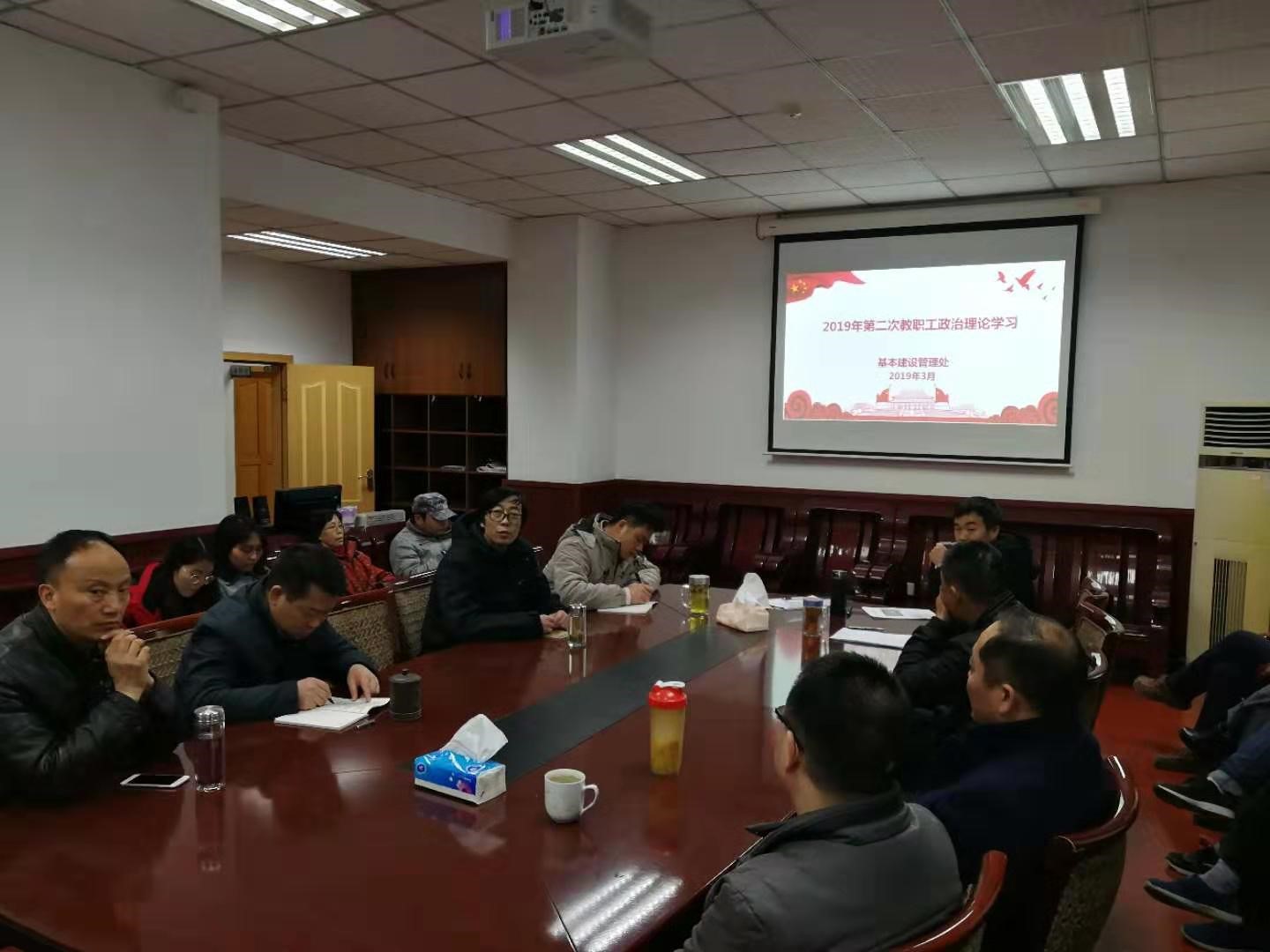 按照学校统一安排,2019年3月1日下午,基本建设管理处全体教职工开展了本年度第二次政治理论学习会。学习会由吴新宇副处长主持。