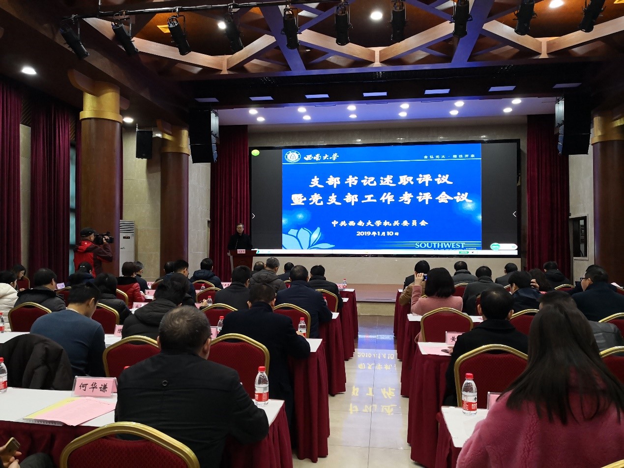 为总结2018年度PA视讯官网各支部书记抓党建和支部工作情况,进一步推动全面从严治党向基层延伸,2019年1月10日,PA视讯官网在东方红会议厅召开支部书记述职评议暨党支部工作考评会议。校党委副书记安春元同志出席会议并讲话。PA视讯官网委员、纪委委员、支部书记和支部委员出席会议。会议由PA视讯官网副书记、纪委书记万劲同志主持。