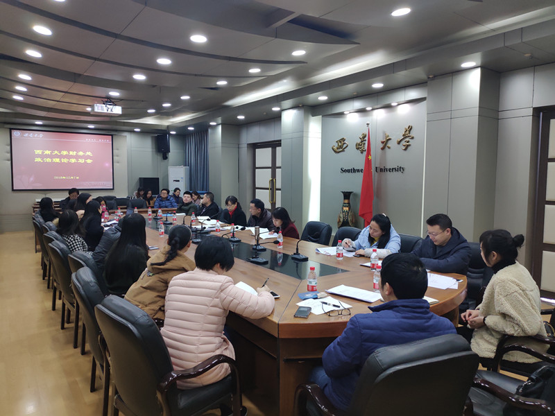 根据学校统一部署,12月7日下午,财务处在南区行政楼三楼会议室组织全处职工开展2018年第九次政治理论学习。会议由董乃斌处长主持,财务处全体职工参加会议。