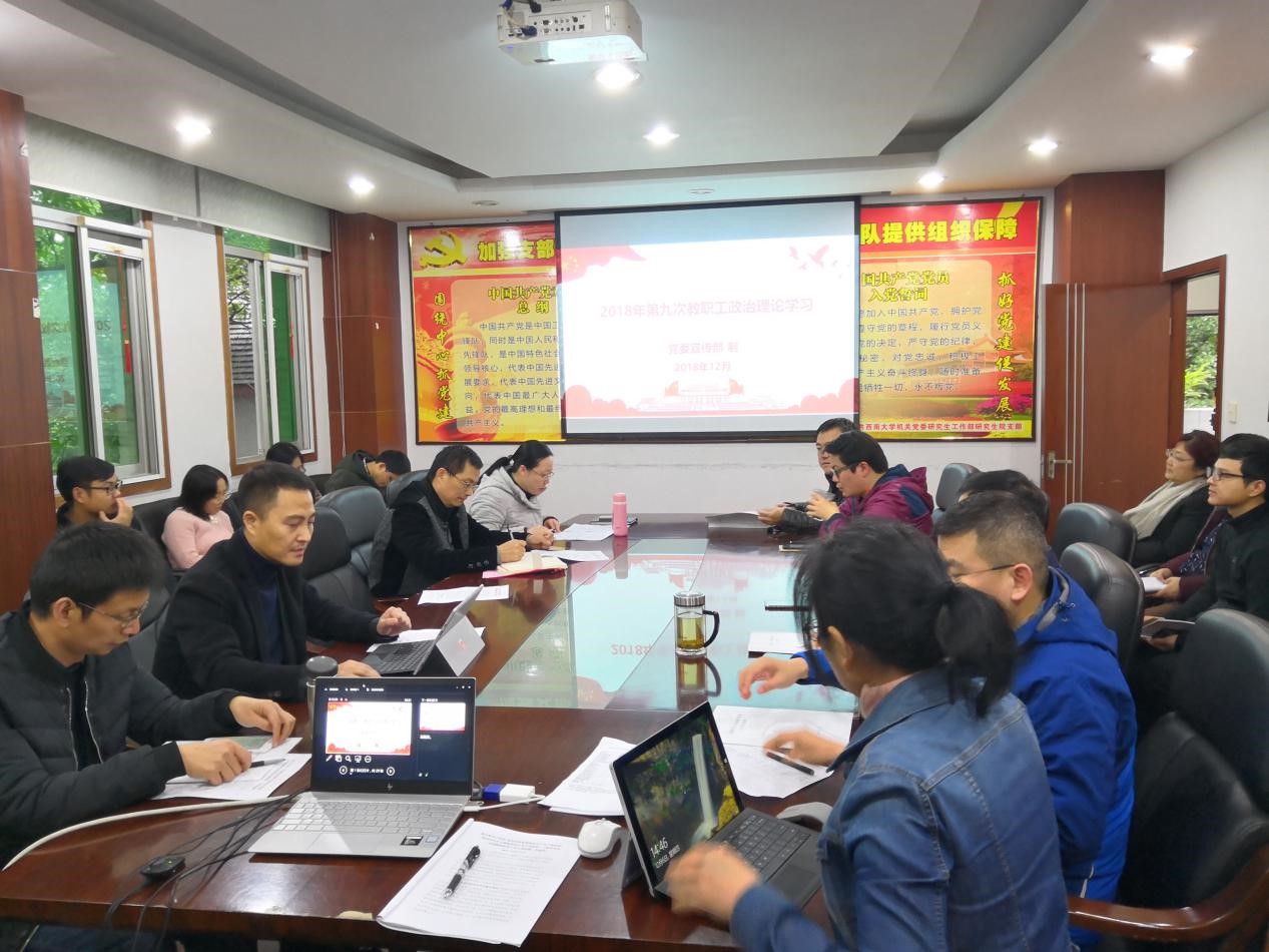 根据学校统一部署,2018年12月6日下午,党委研究生工作部研究生院全体教职工开展了本年度第九次政治理论学习,学习活动由胡娟同志主持。