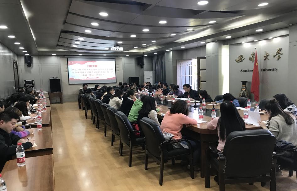 随后,龙艺副处长传达了学校2018年本科教育工作会的会议精神,解读了学校一流本科教育建设实施方案,提出需要凝聚力共识和攻坚克难的重点举措和需要超常谋划与创新智慧的关键要素。