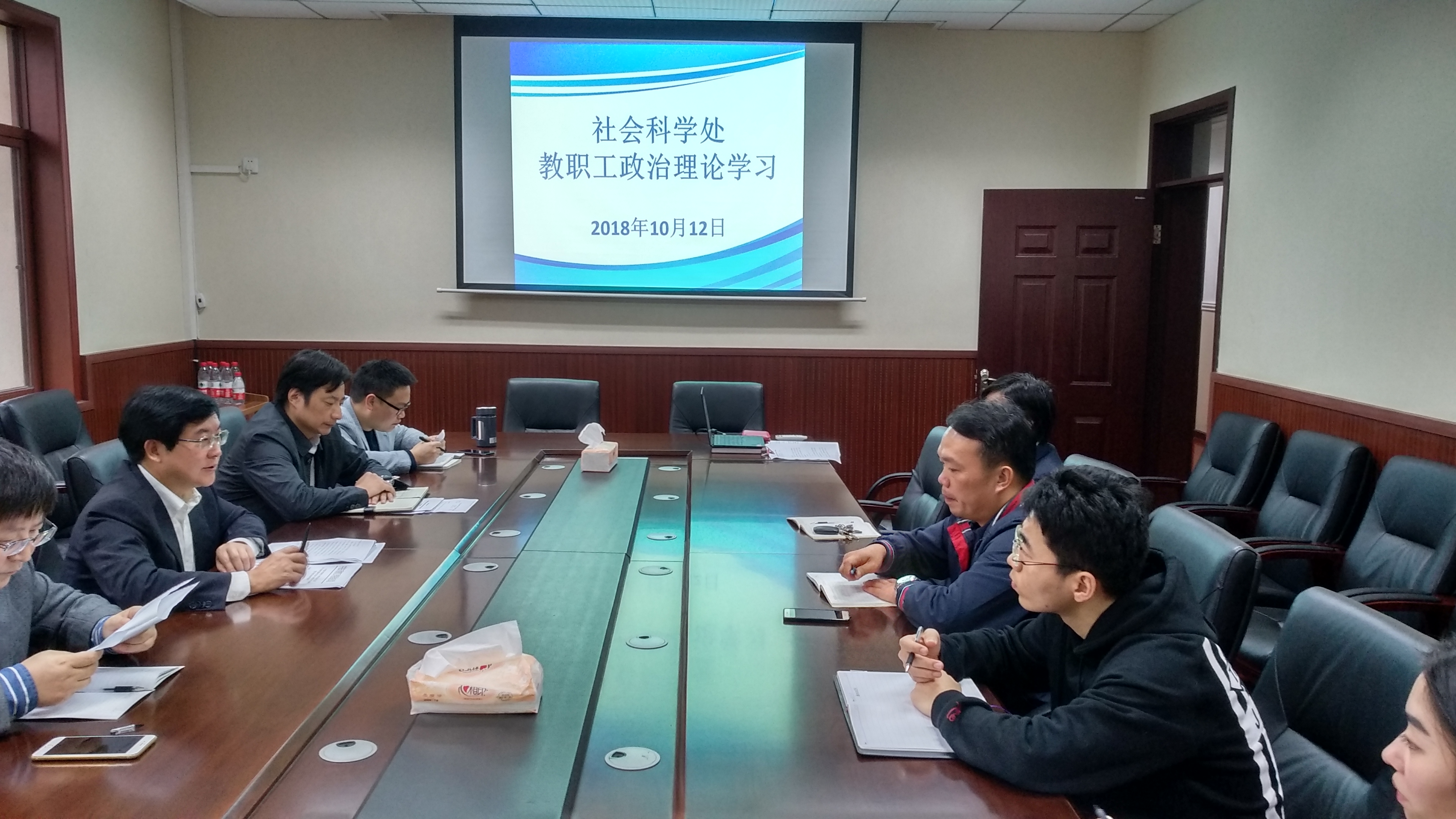 2018年10月12日下午,社会科学处召开10月份教职工政治理论学习会议,会议由刘义兵处长主持。