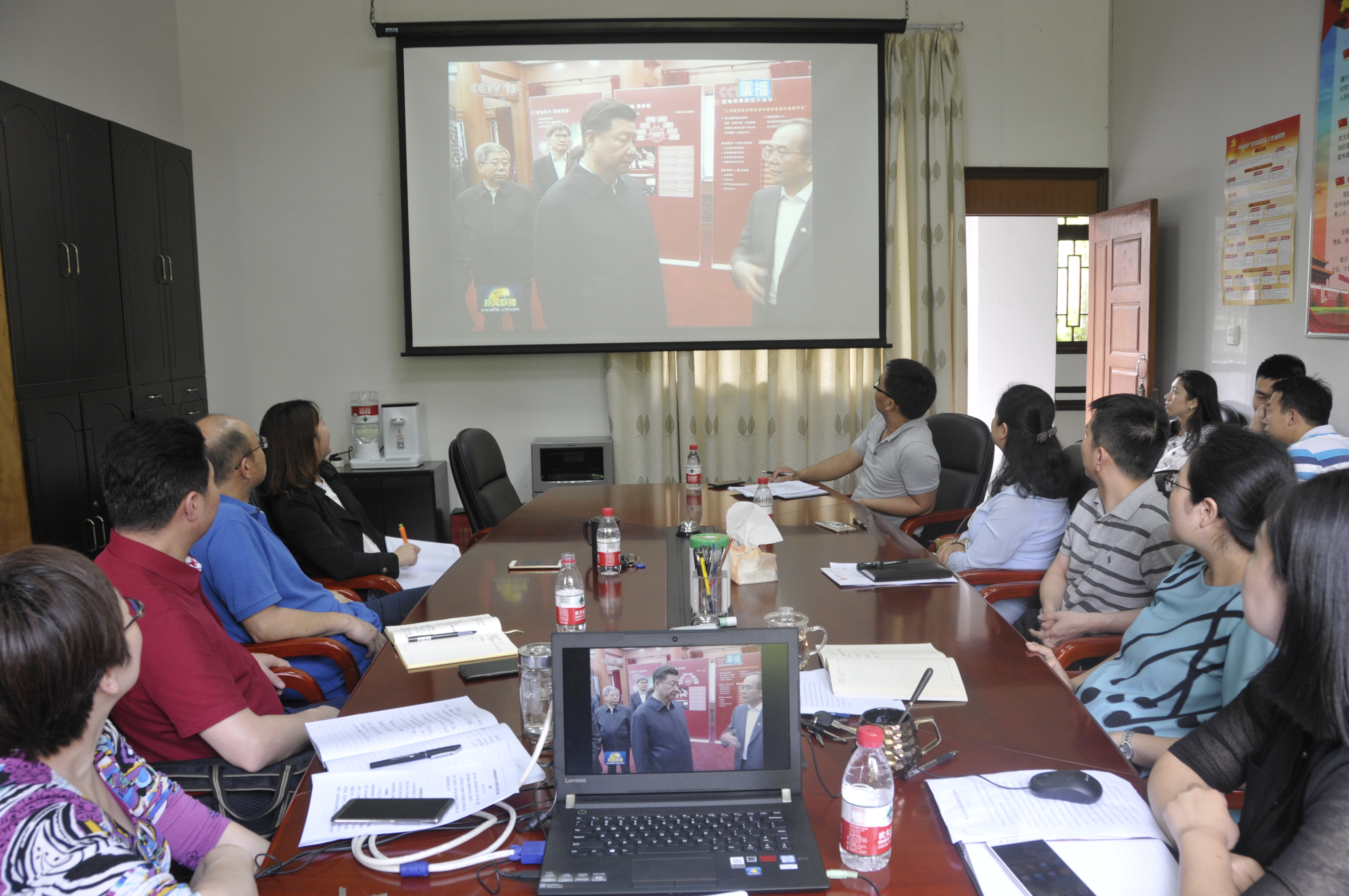 会上,参会同志集体观看了“新闻直播间”节目《习近平在博鳌亚洲论坛2018年年会开幕式上发表主旨演讲》和《习近平在北京大学考察时强调 抓住培养社会主义建设者和接班人根本任务 努力建设中国特色世界一流大学》等视频资料。