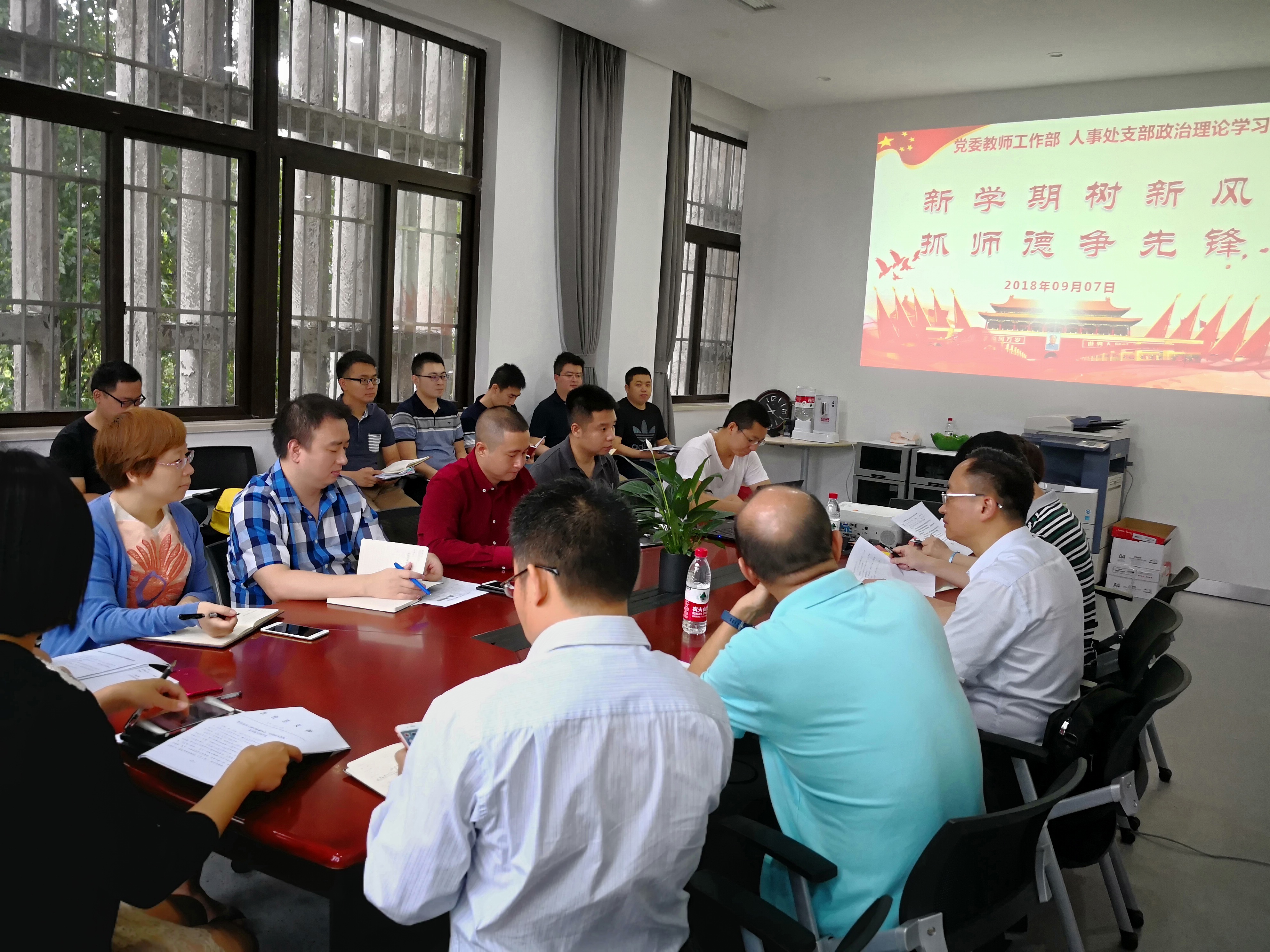 9月7日上午,党委教师工作部、人事处开展本学期第六次政治理论学习,重点学习了“习近平总书记给中央美术学院老教授重要回信精神”“教育部关于授予陈琳同志‘全国优秀教师’荣誉称号的决定”和《关于高等学校加快“双一流”建设的指导意见》。政治理论学习由人事处副处长李惠同志主持。