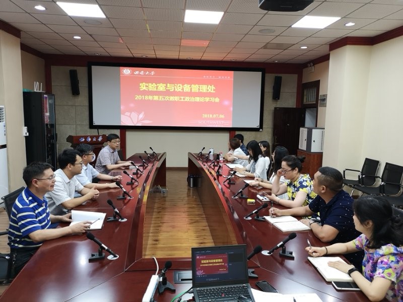 根据学校党委统一安排,76日下午,实验室与设备管理处在南区行政楼0218会议室举行2018年第五次教职工政治理论学习。罗书强副处长主持学习活动,实验室与设备管理处全体人员参加。